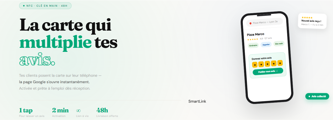 Carte NFC Google Avis | Activée et prête à l'emploi | Livraison 48h | Sans app | PVC